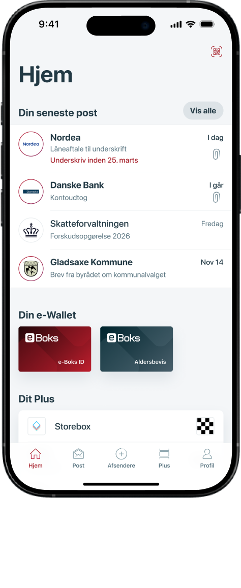 samlet ét stedHvorfor vælger de fleste virksomheder e-Boks, når de skriver til dig? Fordi de ved, at du trygt kan svare, underskrive aftaler og få det bedste overblik, når al din vigtige post er samlet ét sted.